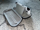 Lisätarvikkeena silikonisuoja ja säilytyskotelo.