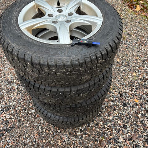 2017 paistetut, nastoja poikki ja hieman kulmaa syöty. Jollekkin voi talveksi kelvata alle. Volvon vanteet ja keskikupit löytyy.