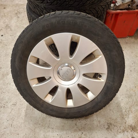 Hyväkuntoiset kitka renkaat vanteineen.