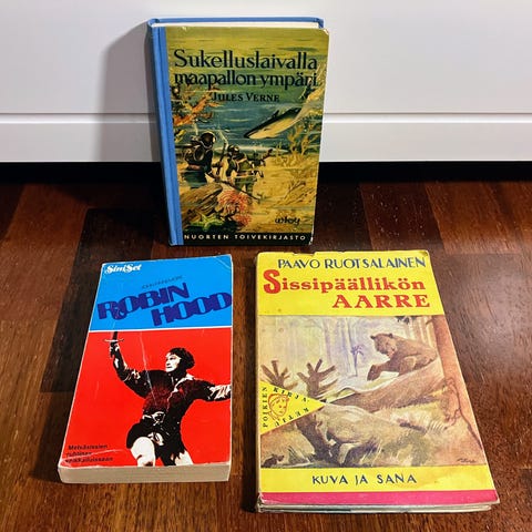 Klassikko kirja Kohti suurta seikkailua. Ajan patinaa, mutta hyväkuntoinen ja ehjä.