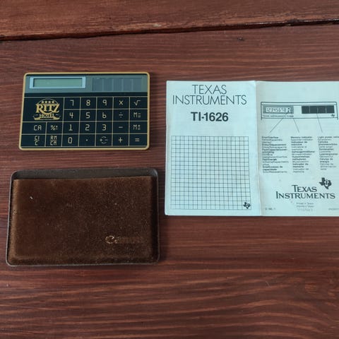 Tässä olisi alkuperäinen Canon LC-20 -taskulaskin 1970–80-luvulta.