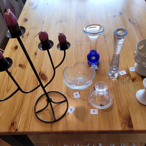 -Iittalan kirkas kynttilän jalka, painava, mm. tuikulle sopiva, koko n. 11x4cm, hinta 5€.