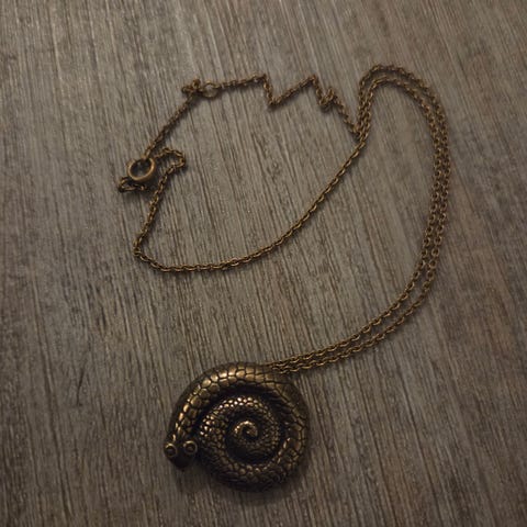 Kalevala Koru Vaskikäärme sarjan rintaneula riipus on valmistettu pronssista. Se on unisex-malli, joka sopii sekä miehille että naisille. Riipuksen kokonaispituus on noin 23 cm. Todella vähän käytetty, siisti.