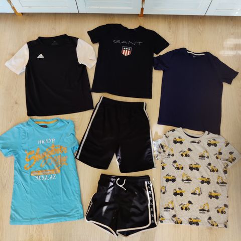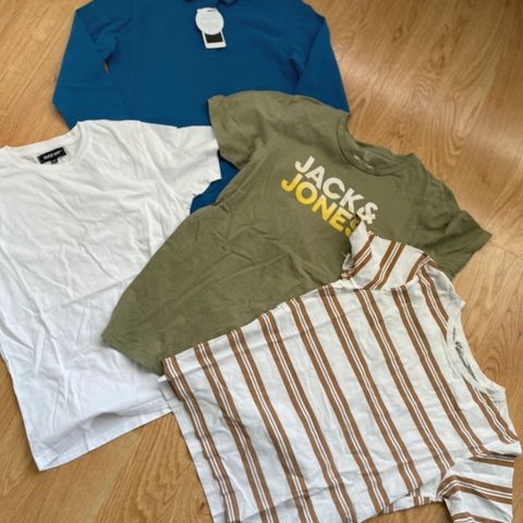Myydään lastenvaatepaketti, koko 140, joka sisältää kolme H&M-housut ja yhden Jack & Jones -t-paidan. Vihreissä housuissa on kaksinkertainen kerros sisäpuolella (katso kuva) ja beiget housut on käytetty vain kerran. Kaikki vaatteet ovat hyvässä kunnossa.