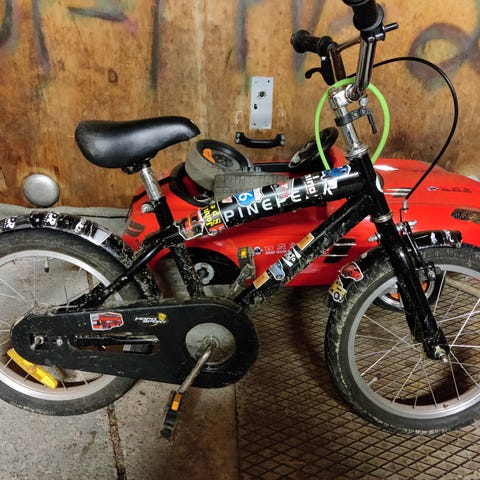 Myydään Madison Luna pienten lasten polkupyörä apupyörillä. Etukori pyörässä.