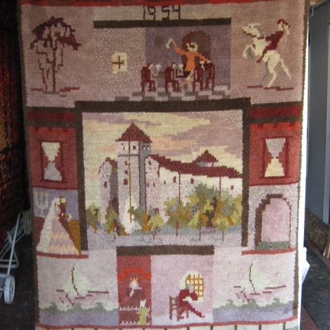 Vintage punainen ryijytyynypussi. 100% villaa + höyhensisätyyny