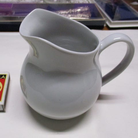 Pieni valkoinen posliinikannu. Vetoisuus n. 3,5 dl