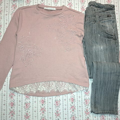 Ihanat sievät vaatteet koossa 122-128cm (yläosat) ja 128cm (alaosat).