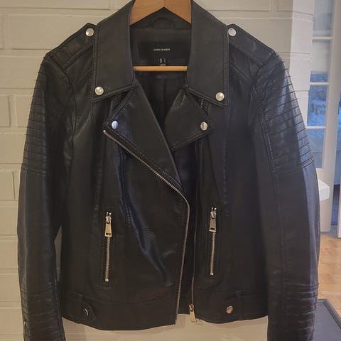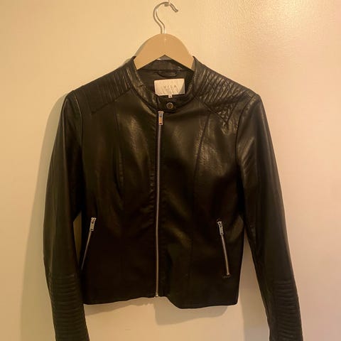 Siistikuntoinen Vilan keinonahkatakki, kokoa 38. Kissatalous.