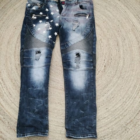 Laatufarkut paksusta kankaasta, tosi raikas väri. Ne on ostettu yli kymmenen vuotta sitten, pidetty noin kolme kertaa ja jätetty kaappiin. Koko on suunnilleen 32–34w ja 34L.