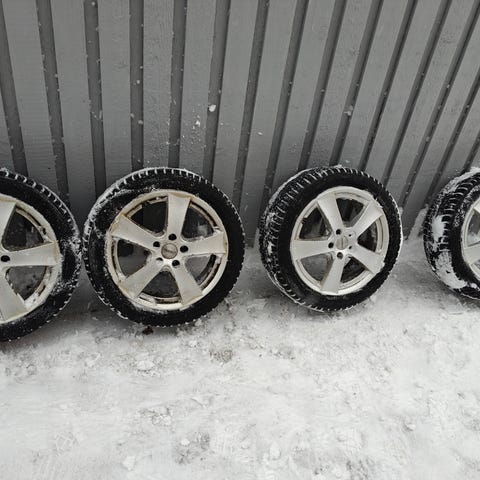 Vanteet todella siisti kuntoiset. Rengaspaine anturit myös paikallaan. Pintaa on 6-7 milliä. Renkaitten koko 225/55 R 17.