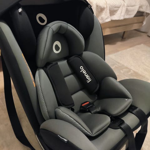 Voi kiinnittää isofixillä autoon, tai pelkällä turvavyöllä. Pään sivutuessa on reilusti korkeussäätöä. Joten toimii monta vuotta lapsen kasvaessa.