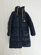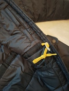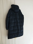 Täytteenä 90% hanhen untuvaa, 10% höyhentä. Tässä takissa et takuulla palele kovimmillakaan pakkasilla.