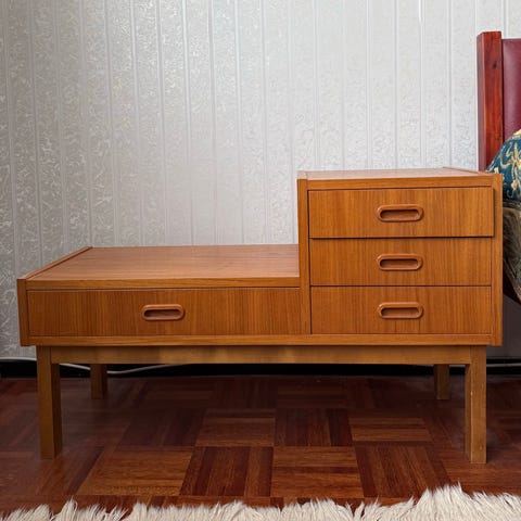 Musta retro yöpöytä valolla.