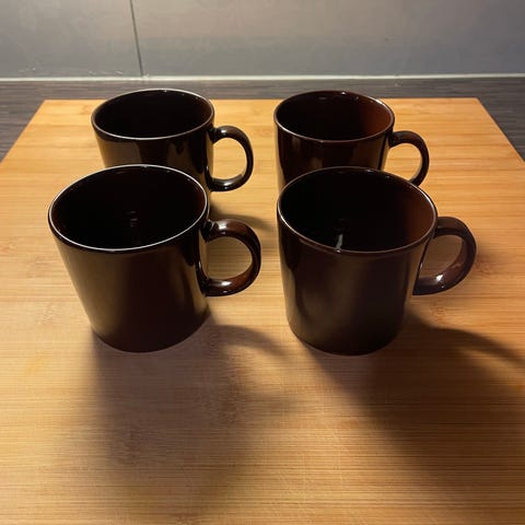 Iittalan Teema kahvimukit, tilavuus 0,3 litraa, väriltään keltainen ja musta. Materiaalina posliini. Mukit soveltuvat kahvin ja muiden kuumien juomien tarjoiluun. Kunto erittäin hyvä. Nouto tai voin lähettää, jolloin läheryskulut maksaa ostaja. 5€/kpl.