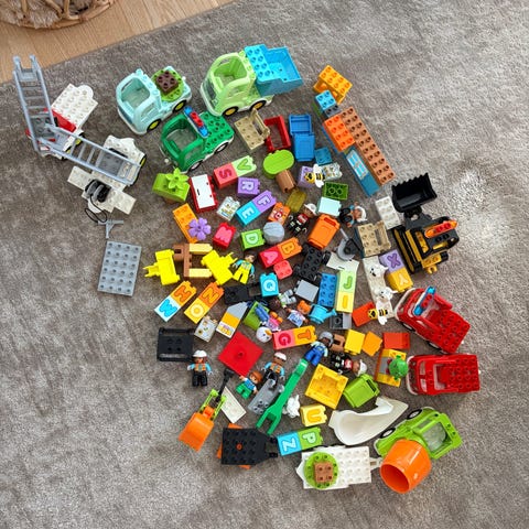 Lego Duplo setti. Yhteensä noin 100 osaa. Erilaisia rakennuspalikoita, 2 junan vaunua, eläimiä, kukkasia ja frozen-jäälinna. Linnan figuurit hävinneet, vain yksi mekko jäljellä. Linnaaan kuuluu mm. vetolaatikko, pieni vilkkuva valo pala, tuolit ja 2 teepannua, yksi jääpuu. Kaikki hyvässä kunnossa seuraavalle leikkijälle.