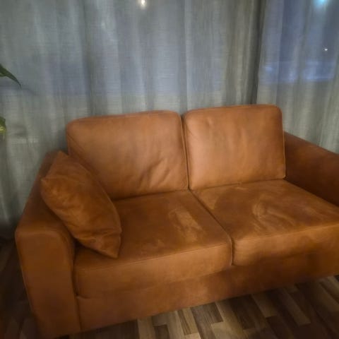 2-istuttava Konjakinruskea nahkasohva
