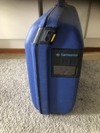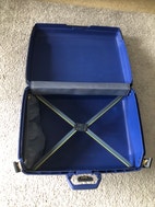 Ulkopinnassa matkustuksen jälkiä. Kova kuori. Sisäpuoli erittäin siisti. kiinnityshihnat tavaroiden pitämiseen paikoillaan.