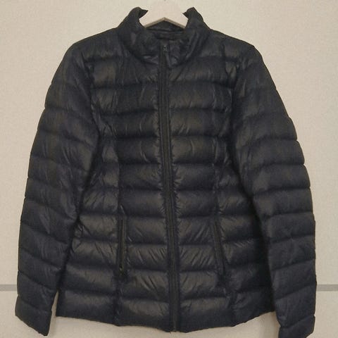Puolipitkä kevytuntuvatakki. Koko L, mielestäni enemmän vastaa M kokoa. Vielä hyvä kuntoinen , hihansuulla pieni repeämä näkyy kuvassa. On käännettävissä piiloonkin.
