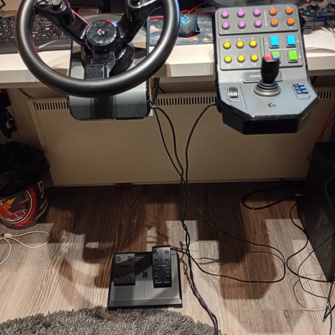 Rallin ajamiseen tietokoneella tarkoitetut ratti ja polkimet