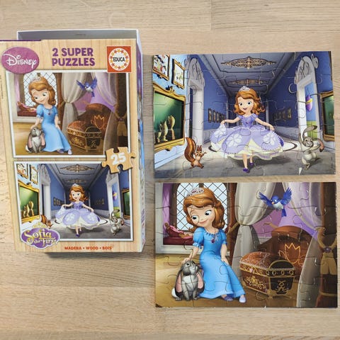 * Laatikon vasemmassa alareunassa vähän kolhua, mutta paloissa ei ole mitään moitittavaa. Puupalapelejä on tosi kiva tehdä, suosittelen lämpimästi.