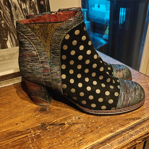 Persoonalliset nahkanilkkurit syksyyn. Hyvä leveä lesti ja luistamaton kumipohja, korko 7cm. Vain juhlakenkinä harvoin pidetyt