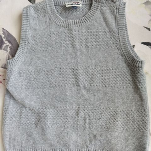 POMPdeLUXin ihana neuleliivi koko 92cm. Kaunis sulkakuvio selkäpuolella. Hiukan nyppyä paikoin pinnassa ja yhtä nappia parsittu paremmin mustalla langalla kiinni. Muuten siisti kunto.