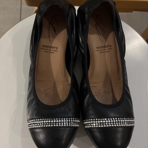 Lähes uutta vastaavat, muutamia kertoja käytetyt Woldersin kengät, joissa numeromerkintä 39 mutta vastaa paremmin kokoa 38. Pinta lakeerinahkaa ja myös vuori nahkaa. Istuvat jalassa kauniista kengän joustavan reunan avulla.
