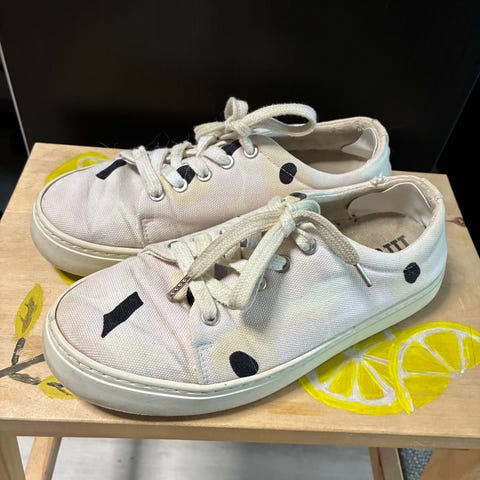Pienet läntit näkyvät kuvissa, eli lähinnä valkoiset nauhat ovat saaneet väriä mutta ei ole itseä ja ainakaan haitannut.