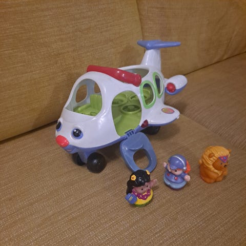 1.kuvan fisher price lentokone,soittaa musiikkia ja muita ääniä,mukana 2 hahmoa.Hp.8€