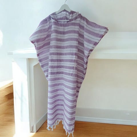 Myydään hupullinen vaaleanharmaa käyttämätön Hamam kylpy poncho.