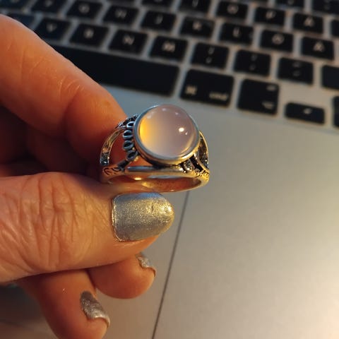Hopeanvärinen sinikivinen sormus. Koko 18. Voin postittaa.