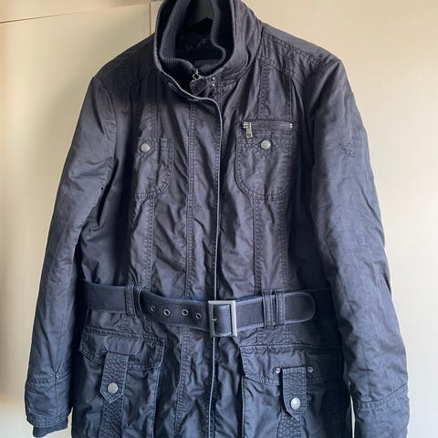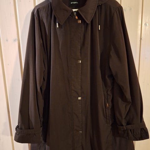 Myydään Storyn nro 44 kerran pidetty kevyt talvitakki. Pituus 98 cm, hartia 45 cm, hiha kainamosta 45cm + tekoturkiskäännös 4 cm ja hartiasta 70 cm + 4 cm käännös. Kainalon alta ympärys n. 118 cm. Pehmeää materiaalia. Malliltaan hieman levenevä helma