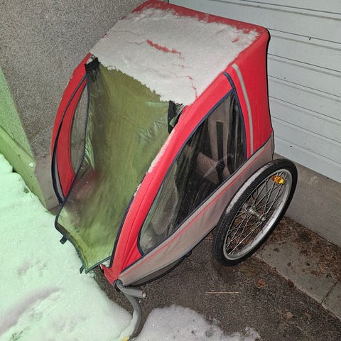 Myyntiin Qeridoon pyöräkärry johon mahtuu kaksi lasta. Tilattu v. 21, käyttöön otettu v. 22. Ehjä ja siisti, imuroitu ja kostella pyyhitty tarpeen mukaan. Säilytetty aina lämpimässä varastossa.