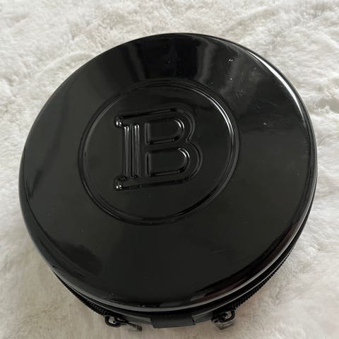 Balmain hair couture soma pieni musta kiiltäväpintainen pussukka / laukku, jossa rannehihna. Mitat 15 x 12 x 3,5 cm. Uusi.