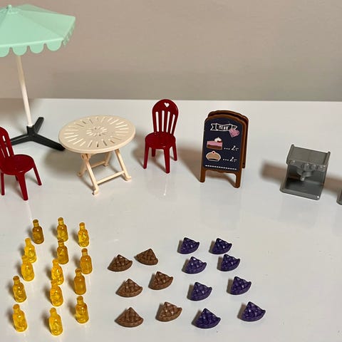 Ihanat pienet metalliset miniatyyri ruuanvalmistus välineet esim. nukkekotiin! Meillä oli Schleich tallin hoitajilla :)