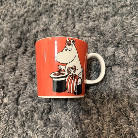 Hyväkuntoinen Arabia Muumimuki Muumimamma aprikoosi (2014-2020), korkeus/halkaisija n. 8 cm, tuotannosta poistunut.