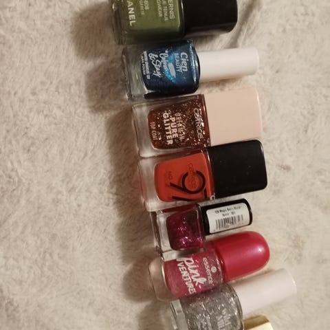 Sisältää erilaisia kynsikoristeita + top coat lakka, Avonin avaamattomat leimasinsetin ja leimasinlaatan, 5 kpl Avonin käyttämättömiä/vain kokeiltuja kynsilakkoja, 4 erilaista muuta lakkaa joita käytetty jonkin verran mutta yli puolet jäljellä. Lakat tsekattu ja ovat toimivia.