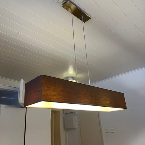 Kaunis K-raudan Cello riippuvalaisin, runko kromia. Kristallit. Maksimiteho 5 x 60 W. E14-kanta. Leveys 970 mm. Muutossa kadonnut kattopistoke puuttuu. Vain nouto Nummelasta.