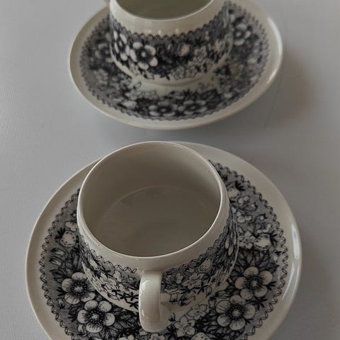Myyn kuvassa näkyvän Rörstrandin Anja kahvikupin. 1kpl kuppi, 1kpl tassi, 1kpl asetti. Kuppi on ehjä. Lähetys toridiilinä. Myös nouto.