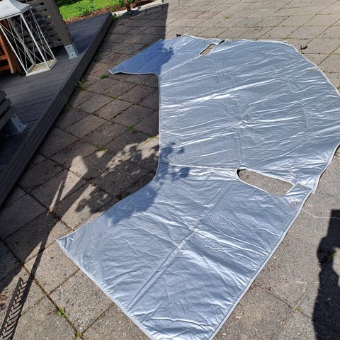 Käyttämätön peite joka pitää kylmän ulkona,peittää koko kojetaulun, ovet ja osan lattiaa.