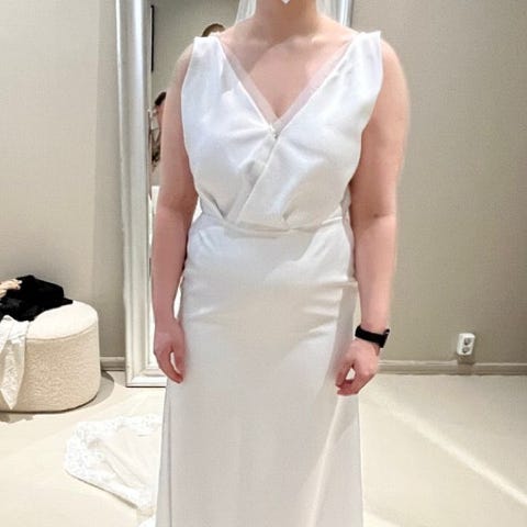 Mekko on pesulassa pesetetty ja täysin ehjä. Ovh 1400€ + selän muokkaus ja lyhennys noin 400€. Mekkoon voi esimerkiksi lisätä olkaimet halutessaan.