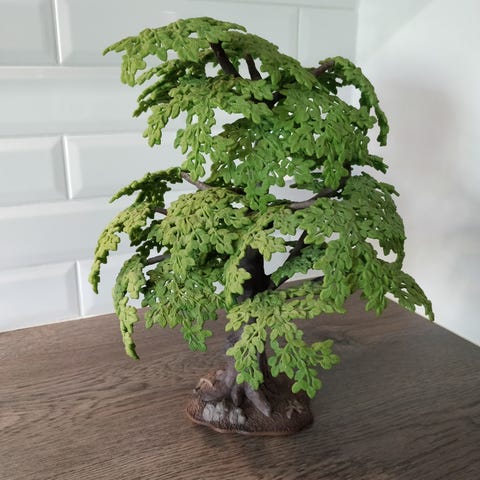 Schleich tammi puu. Runko on jaettu kahteen osaan ja sitä ei ole liimattu. Lehtiosat myös irralliset ja voi asetella runkoon mieleisellä tavalla. Eivät pysy kunnolla paikoillaan, ei siis kestä mitään rajuja leikkejä. Kahdessa viimeisessä kuvassa olen ympyröinyt mikä heikentää paikoillaan pysymisen osasta lehtiä, kaikki lehdet ei ole siis halkeilleet. Jos haluaa lehdistön pysyvän paikoillaan paremmin, niin vinkkinä liimaus, kuten tuossa pyökki puussa on tehty. Korkeutta puulla on noin 30 cm ja leveyttä oksilla noin 21 cm riippuen miten lehdet laitettu paikoilleen ja mistä kohtaa mittaa. Kunnoksi laitan kohtalainen, niin ei tulisi pettymystä. Mielestäni kuitenkin ihan hyväkuntoinen vielä uusiin leikkeihin.