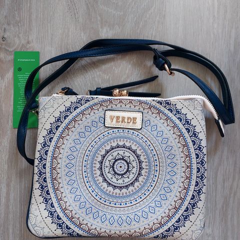 Tekonahkainen olkalaukku. Leveys 40cm, korkeus 30cm, pohjan leveys 10cm. Iso vetoketjullinen tasku takapuolella, sisällä kaksi laukun levyistä lokeroa ja laukun levyinen vetoketjullinen lokero. Erittäin hyväkuntoinen ei mitään kulumajälkiä. Vähänkäytetty.