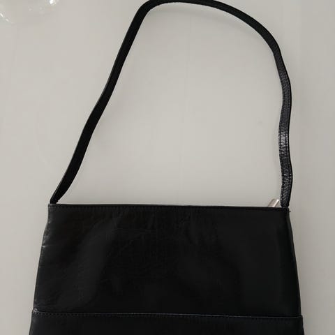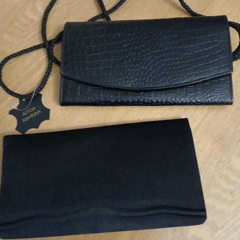 Musta nahkainen ilta-/käsilaukku