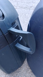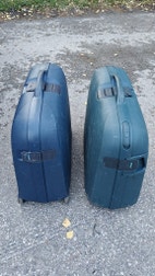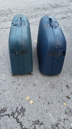 Samsonite matkalaukku, pinta on reissuissa naarmuuntunut, mutta sisältä on kuin uusi. Neljä pyörää, vetohihna ja -kahva, numerolukko ja sivuissa lukitussalvat, kaikki toimivat ja ovat hyvässä kunnossa. Sisällä molemmin puolin jakaja, kaksi kangastaskua, toisella puolen henkarit ja toisella puolella vapaata tilaa. Laukkuja on kaksi kappaletta, toinen on sininen ja toinen vihreä. Toimivat matkalaukut reissuun tai varastoon tavaran säilytykseen. Hinta on 5 euroa kappale.
