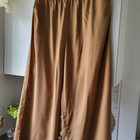 Uudet housut. Väri: new tobacco Brown. Hieman alaspäin levenevät lahkeet eli flared. Olen 167 cm pitkä ja omaan makuuni lahkeetovat hieman liian lyhyet, haara-lahkeensuu 71 cm.