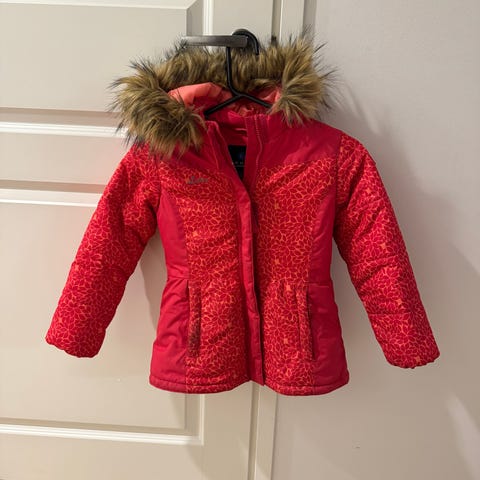 Harmaa tyttöjen takki kokoa 110/116cm. Vähän käytetty. Huppu on neppari kiinnityksellä.