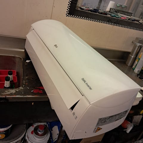 Daikin FHQ71BW1B ilmastointilaite, valmistettu vuonna 2011. Käyttöjännite 220-240 V, taajuus 50 Hz, virta 16,9 A. Kylmäaineena R410A. Sisäyksikön teho jäähdytyksessä 8 kw ja lämmityksessä 9 kW. Maksimivirta 20 A. Laitteen paino 67 kg, valmistettu Tšekissä ja Thaimaassa.