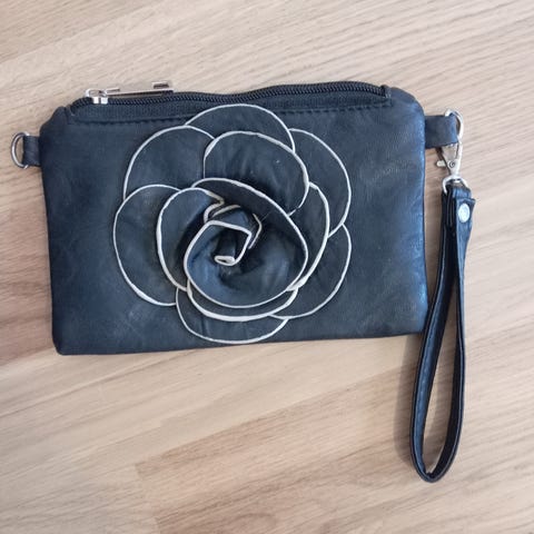 Käsilaukku vihreää tekonahkaa. Sisäpuolella vetoketjutasku sekä 2 taskua ilman vetoketjua.